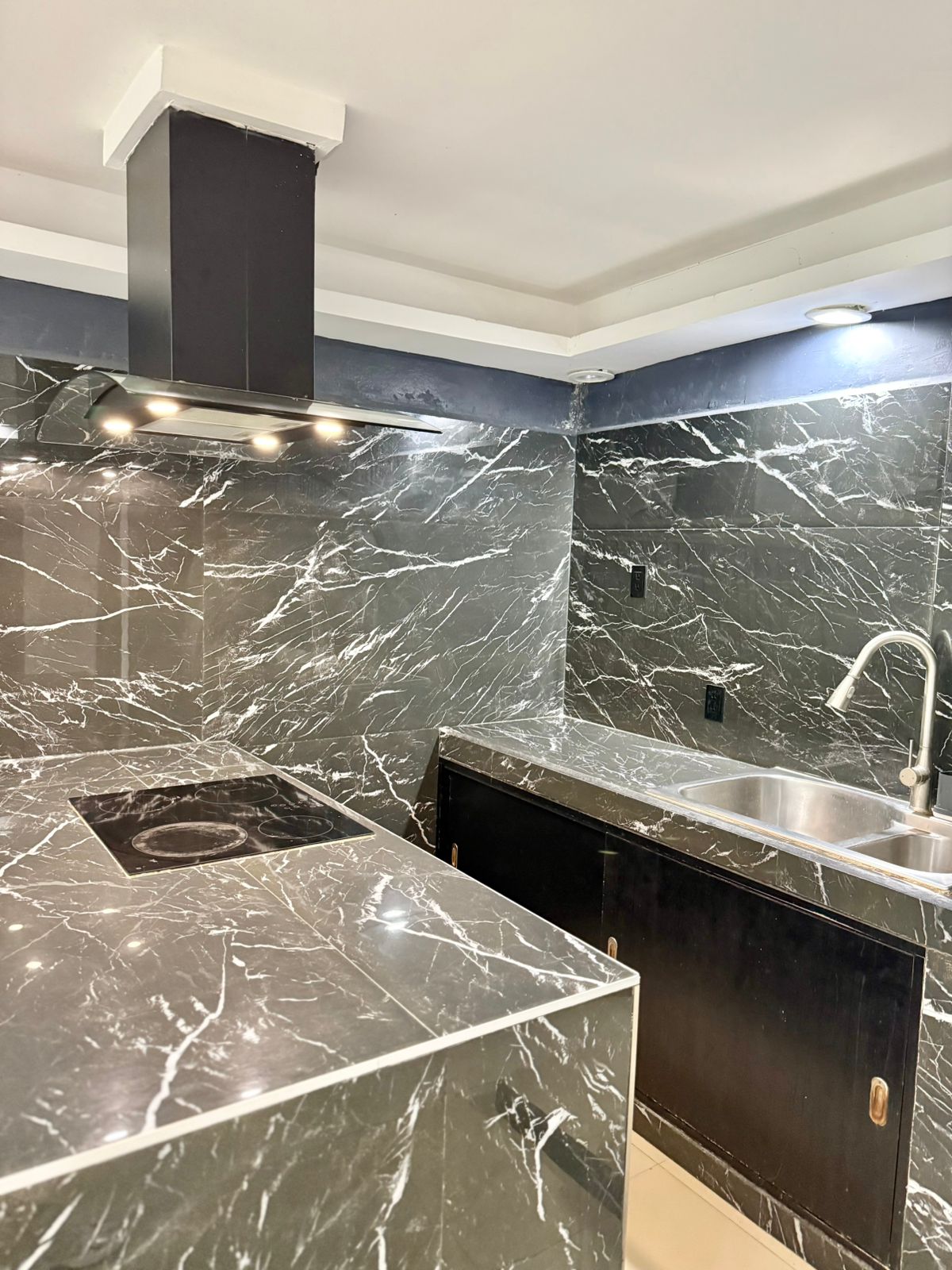 – Cocina equipada con loseta cerámica, estufa eléctrica y campana